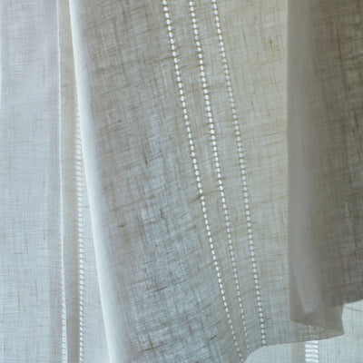 Drawn Thread Curtains - Hemstitch Rows - Ivory White