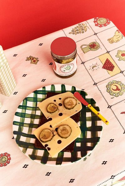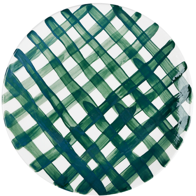 This classic hero plate is hand painted with ♡ in a green Vichy design, in Greece. More than just a plate, it's a truly unique statement piece that will infuse any space with personality and spark a conversation.