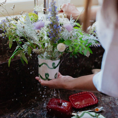 Tall and smooth with a hand-painted edge, it turns a simple coffee into a ritual.