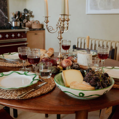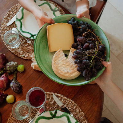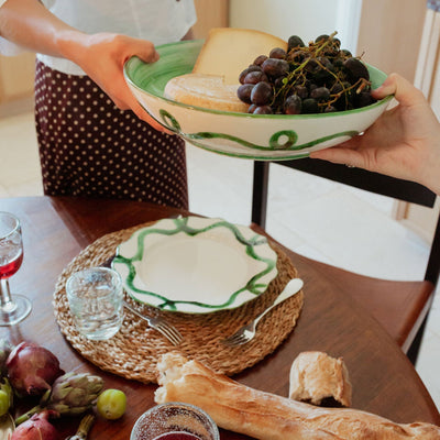 A showpiece that carries roasts, salads, or piles of pasta with ease, each one uniquely handpainted for extra character.