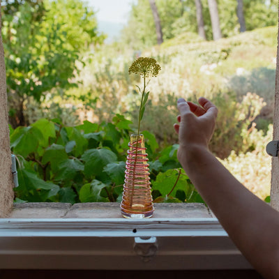 A sculptural twist on a classic form. The colourful wave makes the flame dance even more.
