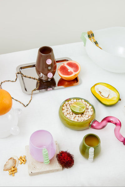 Founded in 2023 by Defne Arıkoğlu and Yasmin Karamolla, Deya is a lifestyle brand redefining modern living with bold, joyful creations. Designed between London and Istanbul and crafted in Turkey, the brand seamlessly blends vibrant creativity with meticulous craftsmanship. Deya first made its mark with playful, mouth-blown glassware, showcasing its distinctive, imaginative approach. Rooted in individuality and artistry, each handmade piece celebrates asymmetry and unique imperfections.