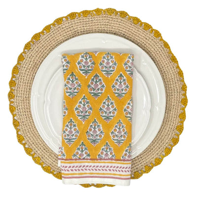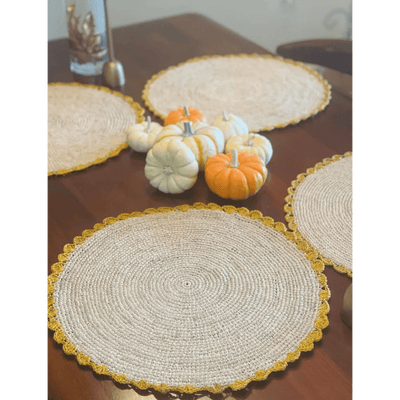 Introducing the Round Raffia Placemats with Marigold Edges - the perfect addition to your dining table decor! These handmade woven round table mats are not only stylish and functional, but they also add a touch of natural charm to your table setting.