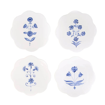 This set of 4 hand-painted plates is the perfect addition to your crockery collection. The unique floral shape of the plate is decorated by hand with four different flowers.