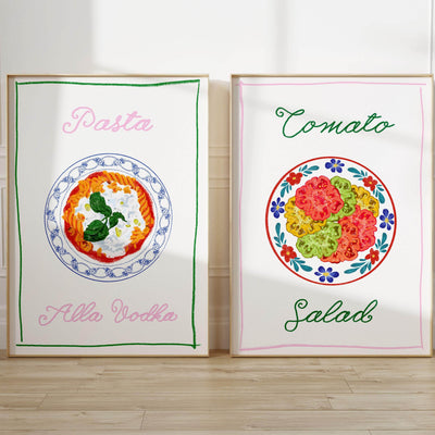 Step into the Dinner With Friends universe with their Pasta Alla Vodka print, a captivating piece sure to brighten up any space. This enchanting print features a detailed and textured illustration of the artist's favourite Italian summer dish. Each print perfectly compliments the other in this collection, so Dinner With Friends suggests pairing your piece as an accompaniment to their Tomato Salad print.