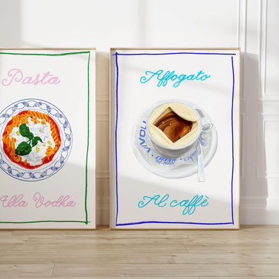 Step into the Dinner With Friends universe with the Affogato al cafè print, a captivating piece sure to brighten up any space. This enchanting print features the artist's favourite treat. Each print perfectly compliments the other in this collection, so Dinner With Friends suggests pairing your piece as an accompaniment to their Pasta Alla Vodka print.