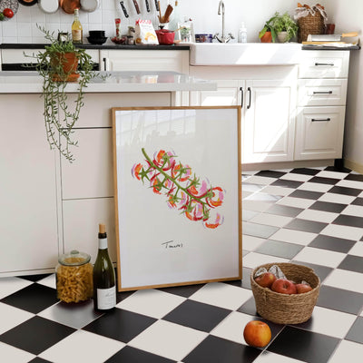 Step into the Dinner With Friends universe with the Tomatoes print, a captivating piece sure to brighten up any space. Encapsulating memories of travelling around Europe, a wonderful addition to any kitchen. Each print perfectly compliments the other in this collection, so Dinner With Friends suggests pairing your piece as an accompaniment to their Vino print.