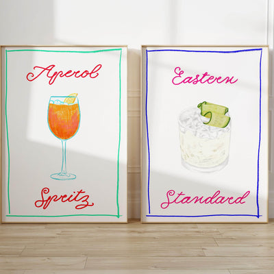 Step into the Dinner With Friends universe with their Eastern Standard cocktail print, a playful piece sure to brighten up any space. The vibrant print features a pencil drawing of everyone's favourite summer drink, transporting you to those warm summer days, the perfect addition to any kitchen. Each print in this collection is designed to compliment the other, Dinner With Friends suggests pairing your artwork with Aperol Spritz for a delightful duo.