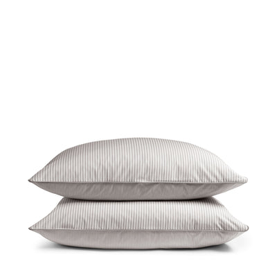 Choose which side you sleep on, or switch it up every day with the reversible striped pillowcase pair designed to perfectly pair with our plain bedding styles in the same shade. Slow-made from the highest quality, long-staple organic cotton threads to form our relaxed cool & crisp striped weave & finished with a beautiful, soft piped edge. Rest your head on a cloud of comfort for the perfect night's sleep. All Pillowcases sold in pairs 50 x 75cm