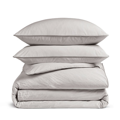 Choose which side of this reversible striped set you have on show, or even mix it up every day! Designed to pair perfectly with our plain bedding styles in the same shade. Slow-made from the highest quality, long-staple organic cotton threads to form our relaxed cool & crisp striped weave & finished with a beautiful, soft piped edge. Enjoy oh so comfortable bedding that makes for the perfect night's sleep. All sets include 1 x Duvet Cover & Pair of Pillowcases Single (135 x 200cm)Double (200 x 200cm)King (230 x 220cm)Superking (260 x 220cm)