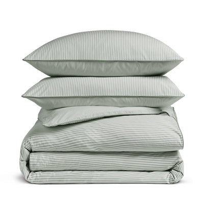 Luxury Organic Cotton Sage Green Striped Bedding Set
