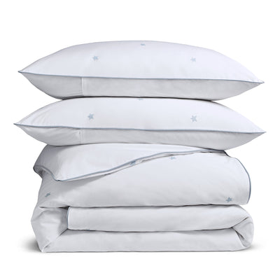 Drift off into your deepest, most peaceful sleep with this calming set. Slow-made from the highest quality, long-staple organic cotton threads to form our relaxed cool & crisp weave. Finished with with hand-designed stars & a beautiful, soft piped edge. Perfect for creating the ultimate sanctuary of blissful dreams & luxe charm. All sets include 1 x Duvet Cover & Pair of Pillowcases Single (135 x 200cm)Double (200 x 200cm)King (230 x 220cm)Superking (260 x 220cm)