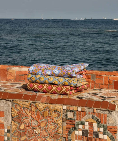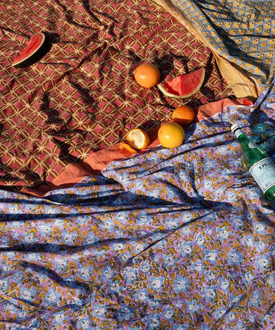 Embrace the grandeur of the Alyssa Double Throw. A larger canvas of floral enchantment, meticulously hand-printed with the finesse of carved wooden blocks. This versatile throw not only adds a touch of botanical elegance to your bed or sofa but also transforms your outdoor adventures with its larger size, perfect for picnics or beach sessions. As an added bonus, it arrives with a matching tote bag, ensuring style and convenience go hand in hand.