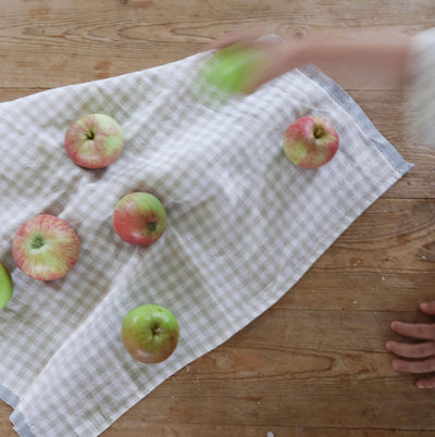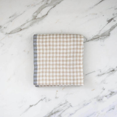 Beige Gingham Linen Kitchen Towels - Set of 2
