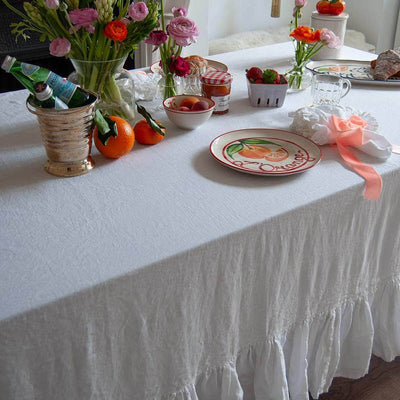 Mistral Drape Ruffled Linen Tablecloth: Voile (White) - Small