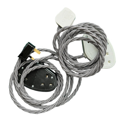 This amazing fabric-covered twisted extension cable comes as standard in 1m - 15m with a black or white plug and sockets.