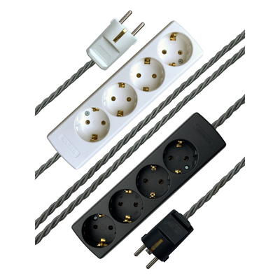 This excellent fabric-covered twisted extension cable comes standard in 1m - 15m with a black or white CEE7/3 'Schuko' plug and socket.