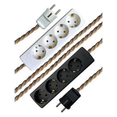 These excellent fabric-covered twisted extension cable comes standard in 1m - 15m with a black or white CEE7/3 'Schuko' plug and socket.