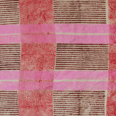The beekman fabric. Hand printed in London. Red, Brown and Pink striped block printed fabric. Perfect for curtains and soft furnishing. Fabrics come per metre and are made to order.
