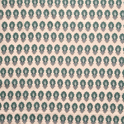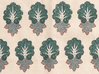 This motif is taken from a wooden Georgian plaster-cast mould; we've repeated it here with reassuring regularity so it appears like a traditional block print.  Its a very pretty small scale pattern and this is the Pine Green Reverse colourway, with a cream background.