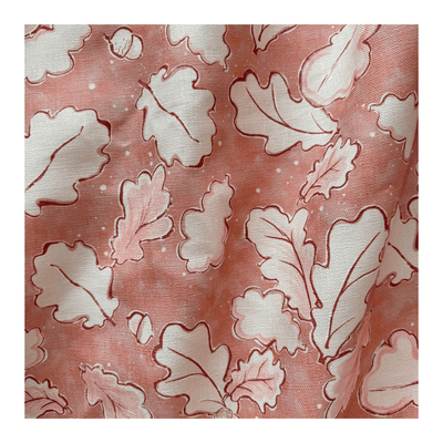 100% Heavy weight linen with graceful oak leaves and acorns in an organic pattern, mimicking nature's gentle dance.