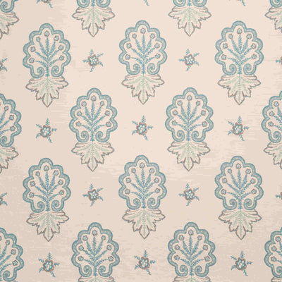 This motif is taken from a wooden Georgian plaster-cast mould; we've enlarged it and added some extra details.  Its a very pretty large scale pattern in a pale duck egg blue on a cream background.