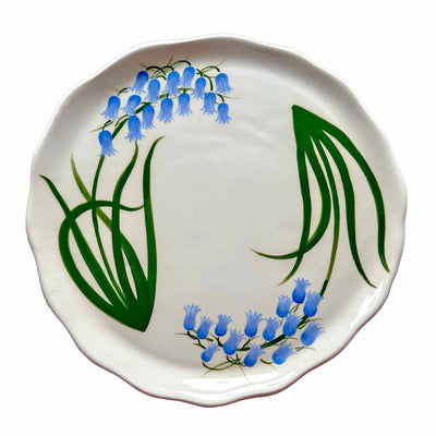 Ceramic hand-painted bluebell dinner plate. From Minnie-Mae's garden collection that features garden inspired designs.