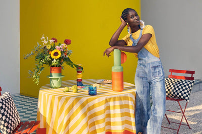 Meticulously handcrafted in India using the artisinal technique of blockprinting, charming imperfections make each and every Lisa Corti mezzero unique Lisa Corti has joined forces with Spanish design duo Blanca Miro and Maria de la Orden of La Veste to create a unique, sunshine-infused textile collection set to enlighten the home all year round. Reimagining the Lisa Corri iconic Nizam Stripes, the joint venture of the two atelier's ethos runs into the La Veste X Lisa Corti pieces. The Nizam Stripes in Sun Yellow are crafted in India.