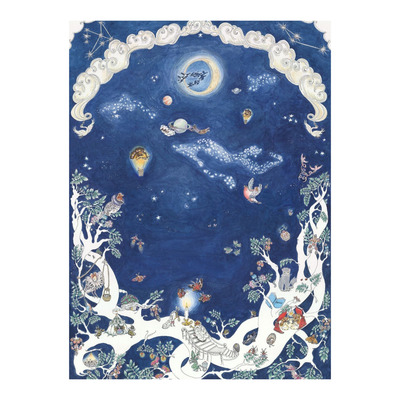 Hand-drawn by Alice Ruby Ross, this print is a love song to the air and the magical creatures that inhabit it. Featuring giant moth air balloons and regal insects soaring through a starlit cosmos, it is the perfect addition to a nursery or bedroom to spark a child’s imagination.