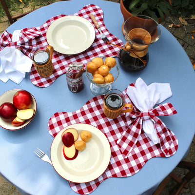 Ooh lala your breakfast, lunch or dinner could not get more perfect with the Mon Chou placemats. With french woven gingham fabric and a scallop border.