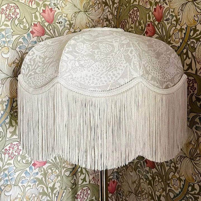 Morris & Co. fabric lampshade with tonal fringe