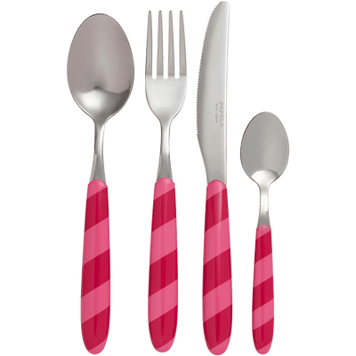 A set consists of: a fork, a knife, a soup spoon and a teaspoon. The cutlery set is made in Italy