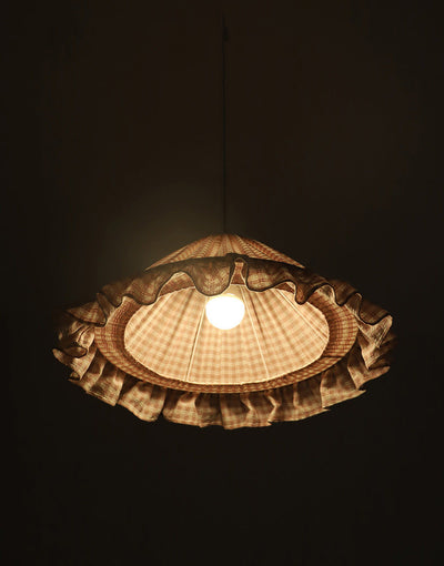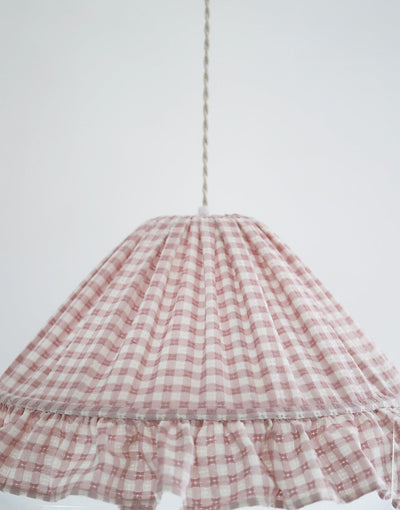Conical Pendant Light With Ruffle Emilia “Petits Carreaux Rose”