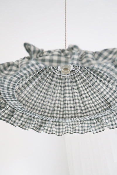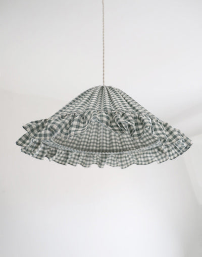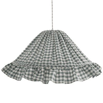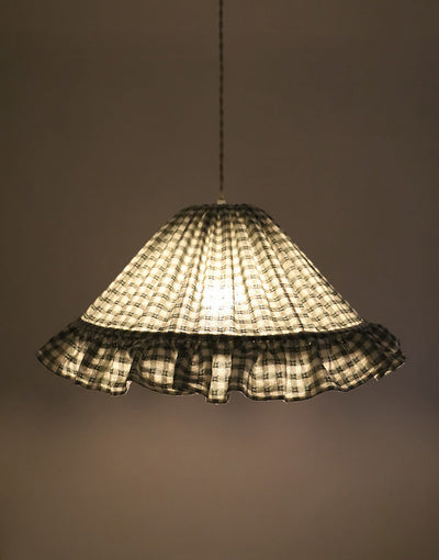 Conical Pendant Light With Ruffle Emilia “Petits Carreaux Vert”