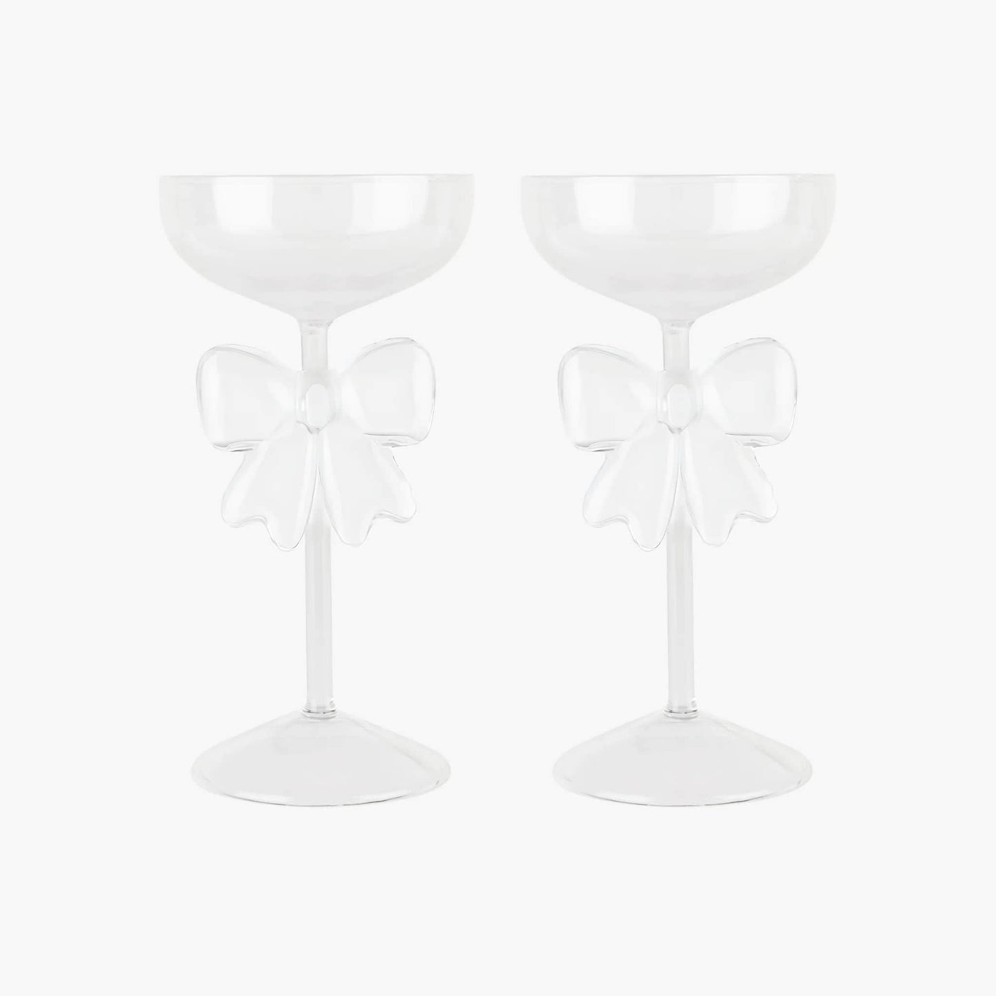 Elevate your tableware collection with our Bestselling Bow Coupes. Offered as a set of two! Meticulously crafted with the utmost care, these coupes boast a mesmerizing bow design that effortlessly enhances the allure of every drink.