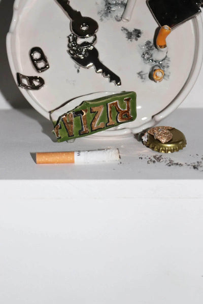Designed for those who know that the little details make all the difference, this piece is perfect for catching the ashes of late-night conversations, smokes that linger, and moments that last just a bit longer. Crafted with their unmistakable touch, this ashtray is more than just a resting place for a stubbed-out cigarette - it's a little slice of attitude, ready to elevate any space with it's flirtatious, unapologetic charm.