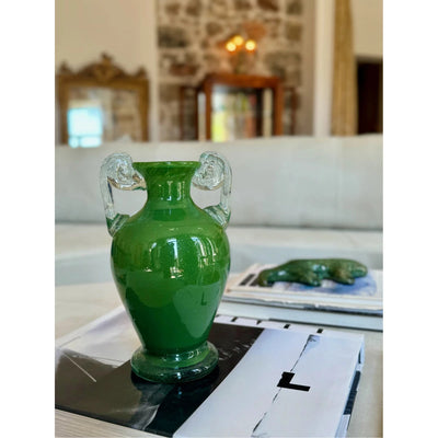 Blown Glass Amphora Vase, Green