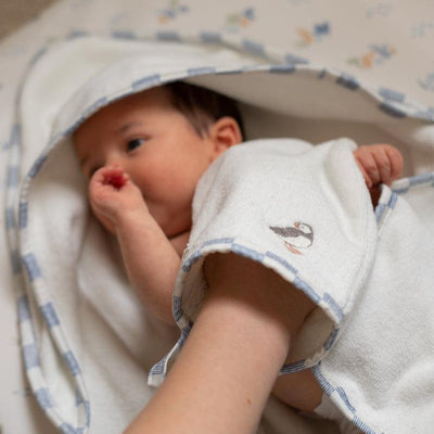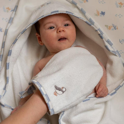 This organic cotton terry towelling bath mitt is super soft on your little one's skin.