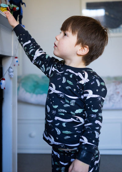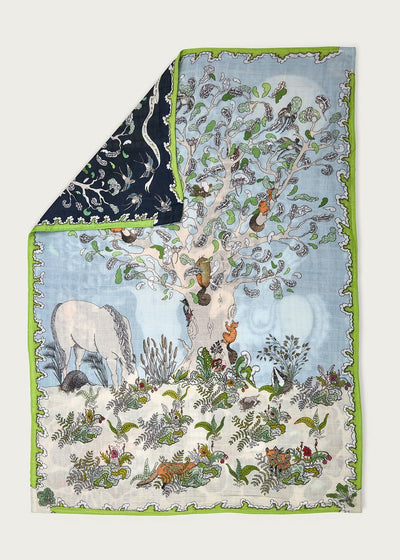 Give a gift of woodland magic with the Enchanted Forest Kids Gift Set - a timeless bundle of soft, organic treasures. Presented in a beautiful organic cotton fabric suitcase, this gift set is sure to delight. Inside the suitcase, you’ll find the bestselling Enchanted Forest large muslin blanket, along with a pair of coordinating pyjamas featuring the 'Bird of Paradise' print (in Blue).