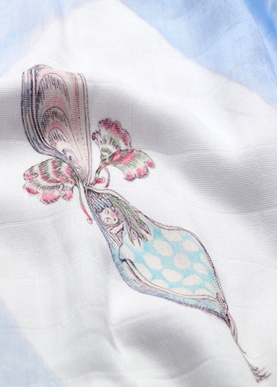 Give a gift of underwater magic with the Harlequin de la Mer Kids Gift Set - a timeless bundle of soft, organic treasures. Presented in a beautiful organic cotton fabric suitcase, this gift set is sure to delight. Inside the suitcase, you’ll find the Harlequin de la Mer large muslin blanket, along with a pair of matching pyjamas..