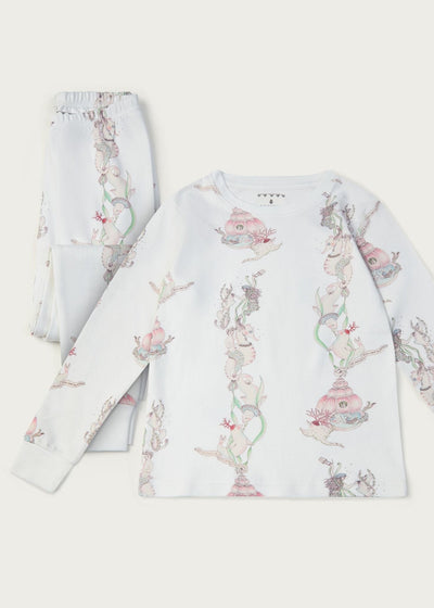 Give a gift of underwater magic with our Legends of the Sea Kids Gift Set - a timeless bundle of soft, organic treasures. Presented in a beautiful organic cotton fabric suitcase, this gift set is sure to delight. Inside the suitcase, you’ll find our bestselling Legends of the Sea large muslin blanket, along with a pair of coordinating pyjamas featuring our 'Stripey Seaweed' print.