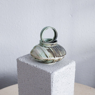 Takara means “treasure” in Japanese, a fitting name for this handmade orb-shaped box, perfect for keeping your jewelry and small keepsakes. This piece took Yvonne through a long, challenging process: two failed prototypes, hours of carving, and mold-making setbacks.
