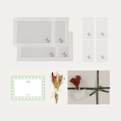 With the Classic Set, you’re gifting a complete and elegant experience. The linen napkins and placemats add a touch of sophistication to any table, while the cocktail napkins are perfect for special occasions. The included card lets you express your feelings in words, and the gift box with ribbon makes unwrapping part of the joy. Plus, the vibrant bouquet brings color and freshness to the moment.