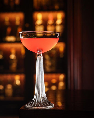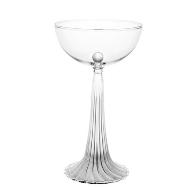 The NEREIDA coupes reference an enchanting mythological undersea world. The highly sculptural design holds a clear glass sphere, as a precious pearl. Each piece is handmade in Italy by master glassblowers using high-quality borosilicate glass.