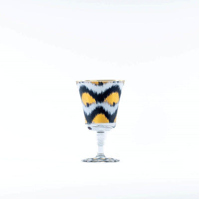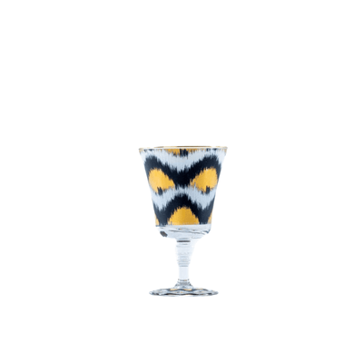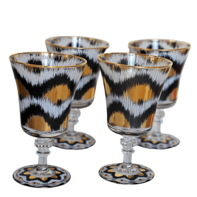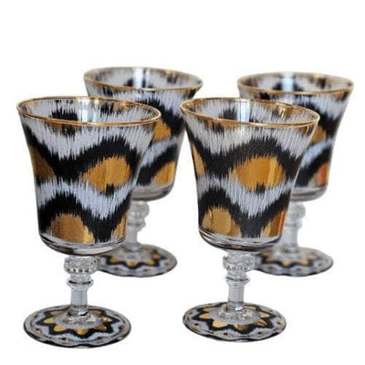 Add a touch of glamour to your glassware collection with our Ikat-pattern gold goblets, available in a set of 4. Featuring a stunning Ikat design in a luxurious gold finish, these tumblers bring elegance and sophistication to any occasion—perfect for entertaining or elevating your everyday drinks.
