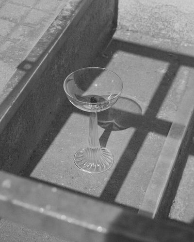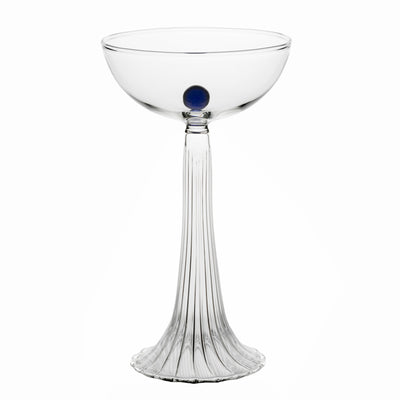 The NEREIDA coupes reference an enchanting mythological undersea world. The highly sculptural design holds a colored glass sphere, as a precious pearl. Each piece is handmade in Italy by master glassblowers using high-quality borosilicate glass.