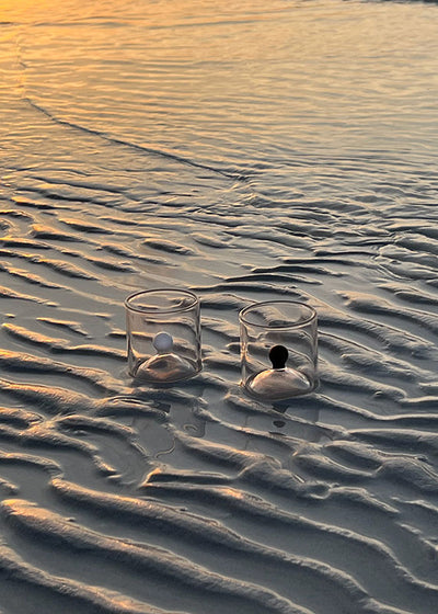 — Set of 2 — 100% borosilicate glass — Handcrafted in Italy — Dimensions: Diameter 5.5 cm (2.2”); Height 5.5 cm (2.2”) — Capacity: 3 oz