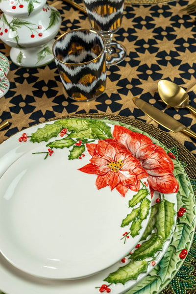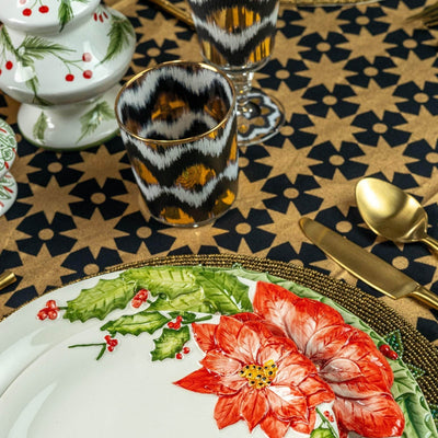 Add a touch of glamour to your glassware collection with our Ikat-pattern gold tumblers, available in a set of 4. Featuring a stunning Ikat design in a luxurious gold finish, these tumblers bring elegance and sophistication to any occasion—perfect for entertaining or elevating your everyday drinks.