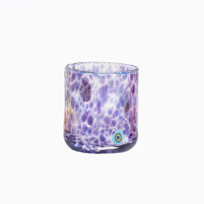 These beautiful mini glasses are hand blown by master glass blowers. Each on is truly one of a kind, accented with tiny murrina details.