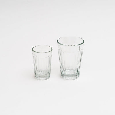 Thick walled fluted glass. This European cafe/bistro feel glassware is a perfect everyday glass. The small is great for espresso or shots whilst the large size is suitable for general drinks.
